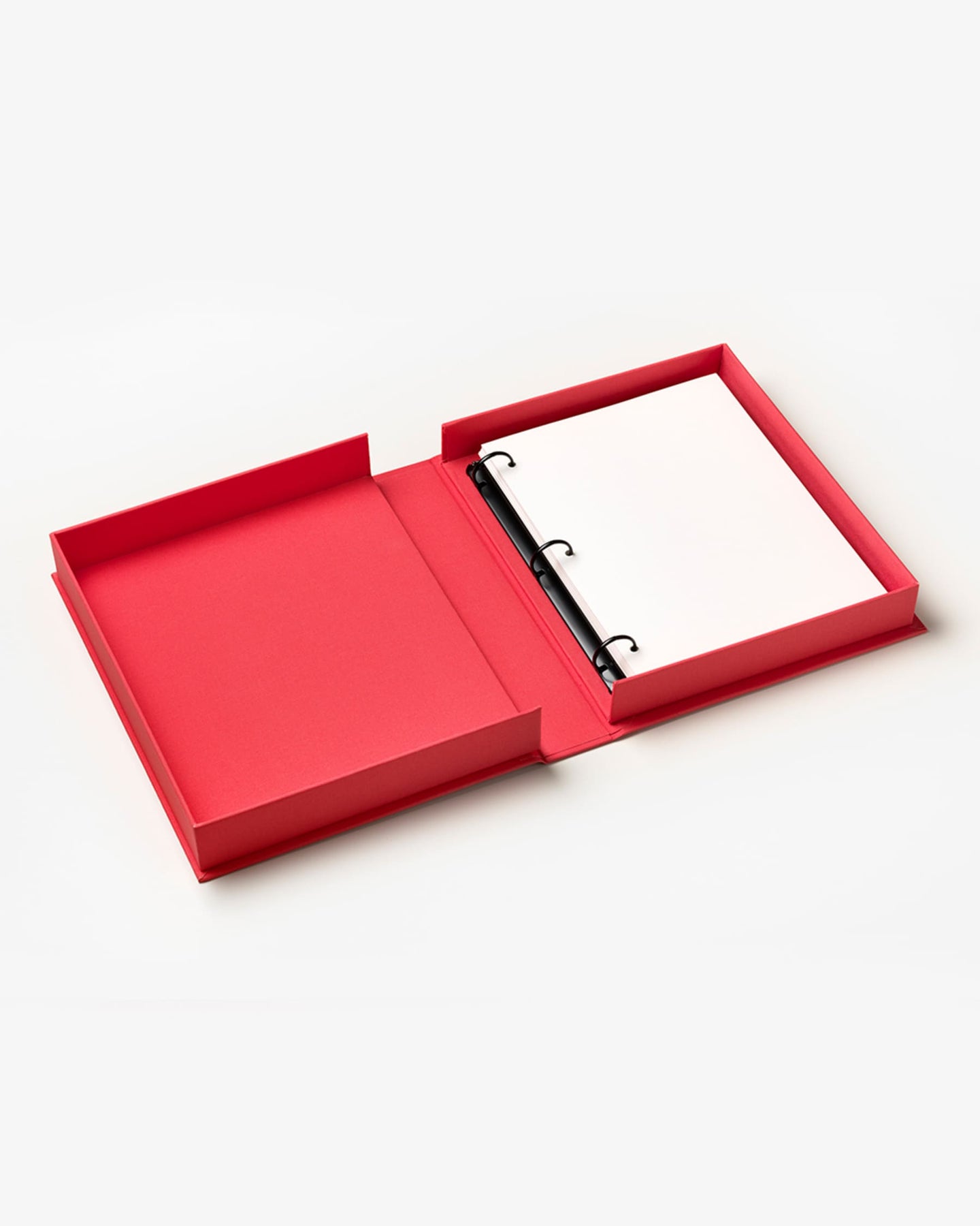 Featuring a red/cerise cloth cover, with gold foiled text and silkscreen printed balloons. The album consists of 30 pages of cream-white high-quality photo paper, and you can easily attach your photos using Printworks's stickers or corners. Each page of the album can accommodate two 10x15 cm photographs, leaving space for you to write something underneath.
