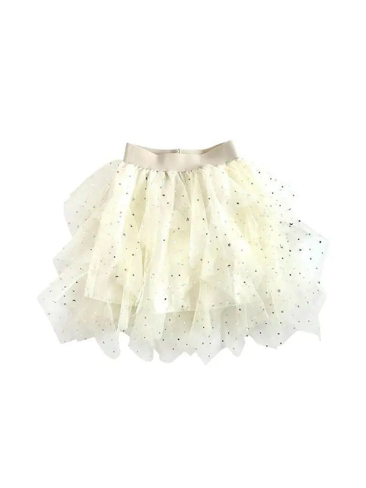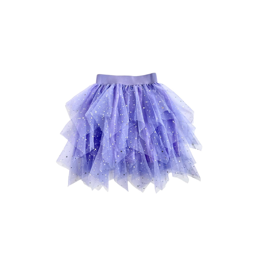 Discover the Wednesday Star Ruffled Skirt by Ratatam Kids! With its short and twirling cut, decorated with small sparkling stars, it adds a magical and mysterious touch to children's costumes. This skirt is perfect for creating an elegant, dark... yet always fun outfit. Available in two essential colors – purple and beige – it easily pairs with a t-shirt, tights, or an accessory. 🌟 Its ruffled style that adds movement and character Its light and comfortable fabric, suitable for children Its sparkling stars that add a magical touch to the celebration Its versatility: perfect for a witch, a mystical creature... or simply to shine at the costume party.