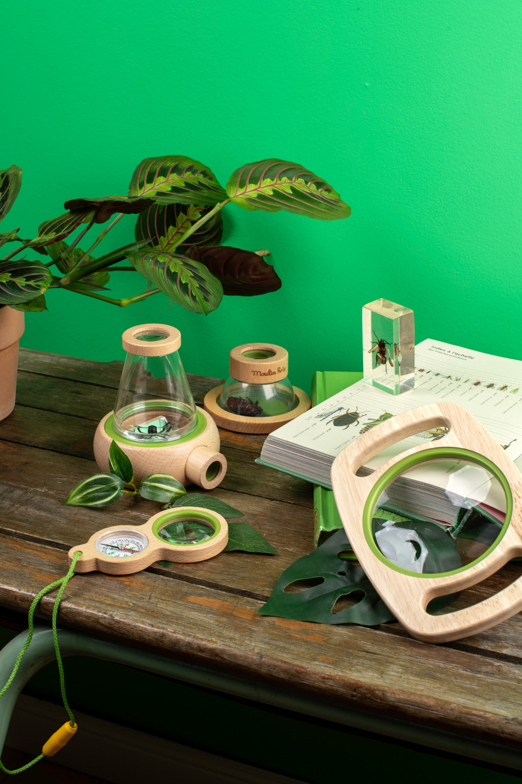 The large magnifying glass with handles allows you to observe the infinitely small. Thanks to its three different zoom levels (2x, 3x, and 4x), and designed with two handles, it offers children a good grip and optimal comfort for observing the nature around them.