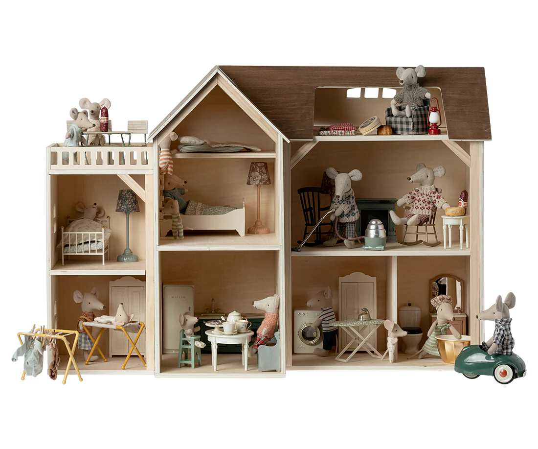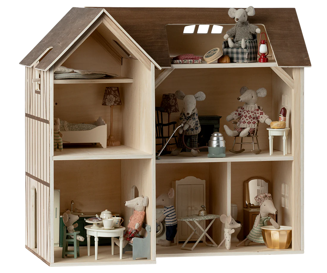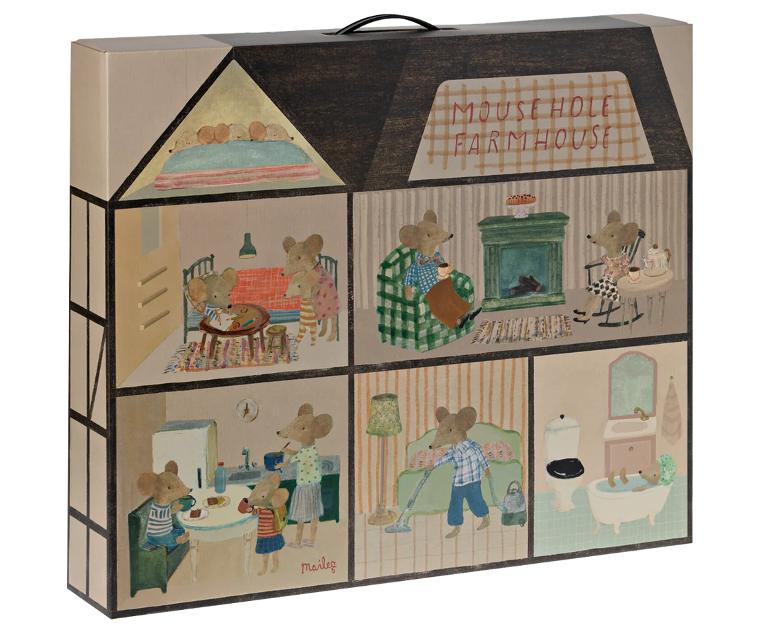 Mouse hole Farmhouse is the perfect home for your mouse family. Decorate each room with your favorite furniture and accessories. If the house gets too small you can add the bonus room (sold seperately).