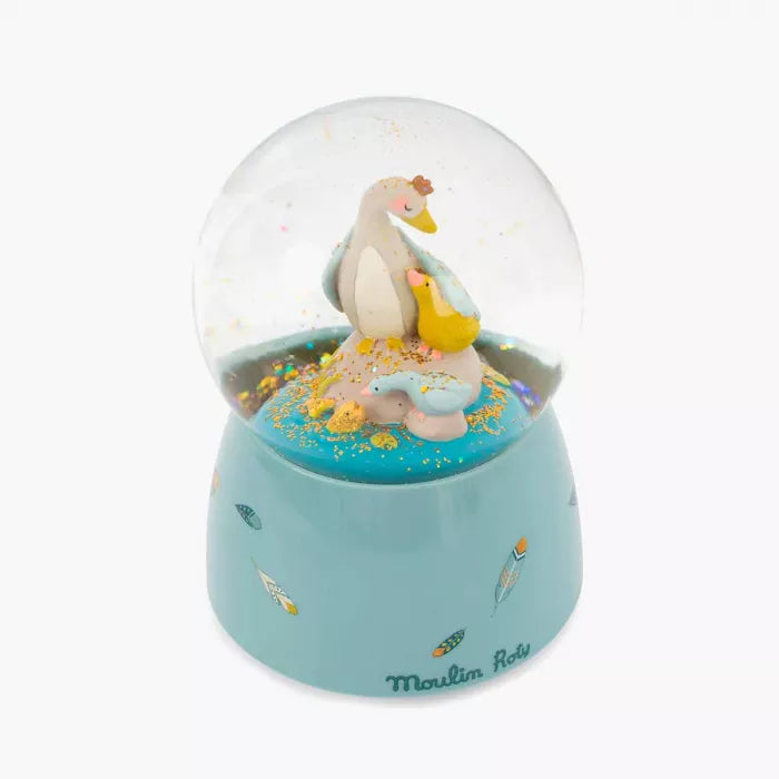 Musical snow globe with Olga and her little geese surrounded by golden glitter! In addition to decorating your baby's room, a lovely melody will lull your baby to sleep...