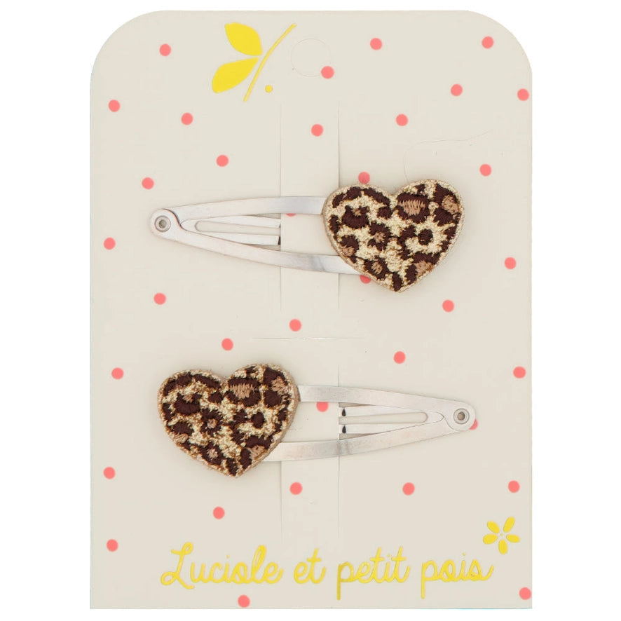 On the way to a jungle safari with this pair of leopard hair clips! Approximately 2 x 2 cm. sewn onto 5 cm snap clips.